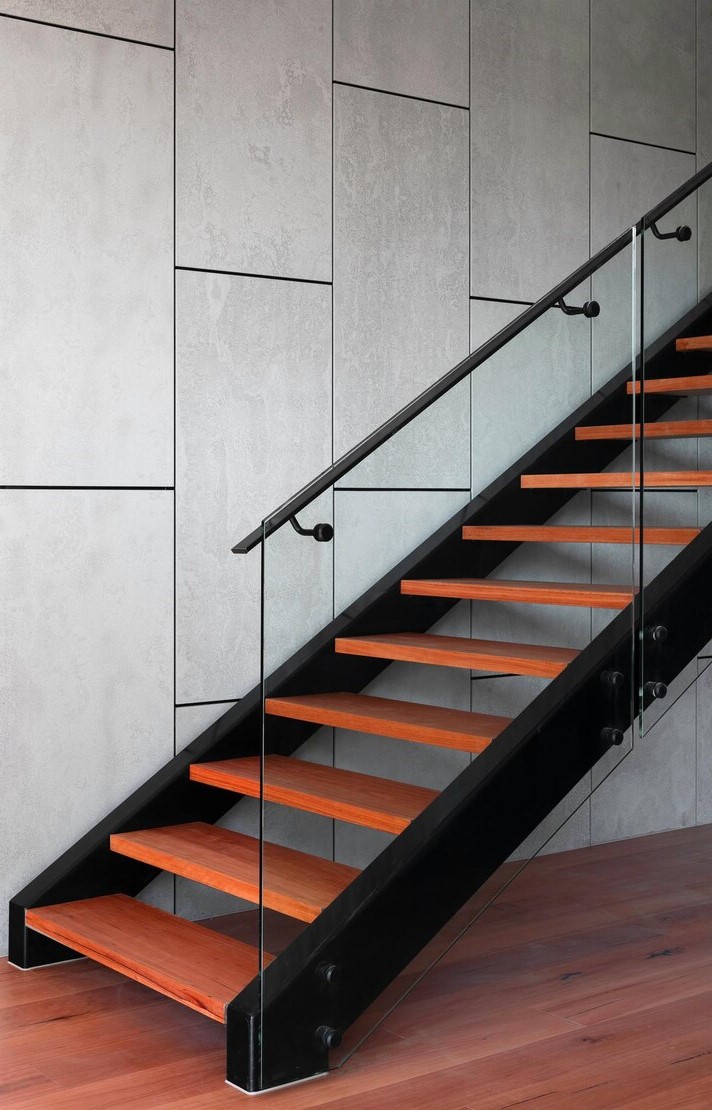 Innovative staircase solutions, including metal, glass, and wood combinations, designed for both functionality and visual appeal.